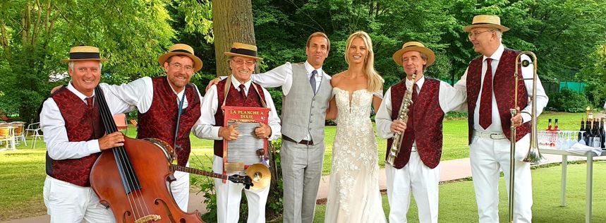 Notre groupe de Jazz est constitué à partir de 3 musiciens se produisant sans ampli ni sono en mode statique ou mobile à l’extérieur ou en intérieur. Notre groupe est spécialisé dans l’animation musicale jazzy en interprétant des standards New Orleans, Dixieland, jazz des années 30, des chansons françaises version swing (Les Copains d’Abord de Georges Brassens, C’est magnifique de Luis Mariano…).